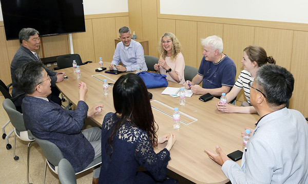 지난달 30일 한국식품산업클러스터진흥원(이하 식품진흥원)을 방문한 와게닝겐대학 푸드바이오연구센터 연구진은 박성태 총장과 최준호 농생명·바이오 사업단장 등 원광대 관계자들과 함께 ‘식품 및 바이오소재 분야 교육·연구·사업화 연계센터’ 구축 목적과 방향, 활용 방안 등에 대한 설명을 듣고, 농생명 산업을 선도하는 전북특별자치도의 향후 인재양성 방안 및 교류 등에 대한 의견을 나눴다. 전민일보中
