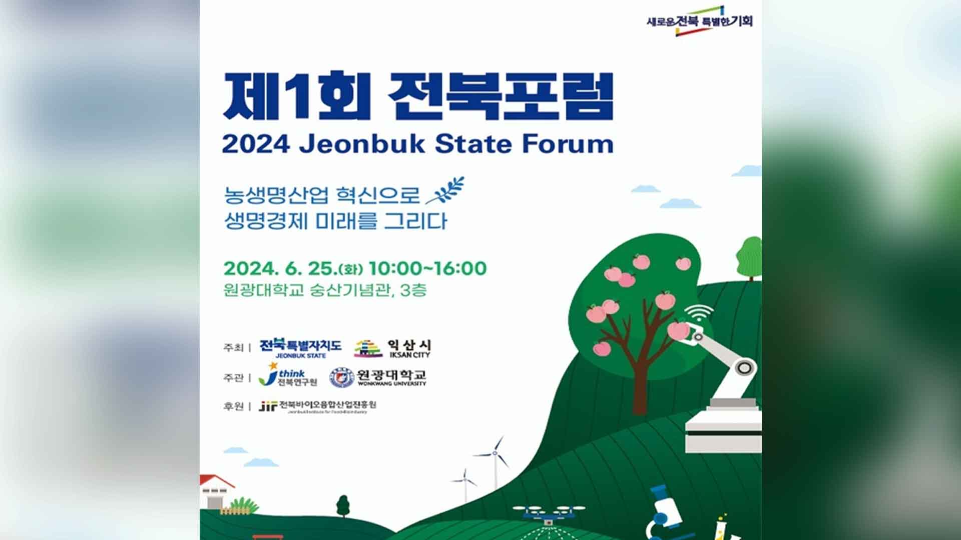 전북자치도와 익산시의 공동 주최로 오늘(25일) 원광대학교에서 열린 제1회 전북포럼에는 유엔식량농업기구 초청연사와 주한 아르헨티나 대사 등 9개국이 참여한 가운데, 농생명수도 조성에 대한 방향성을 모색하는 시간을 가졌습니다.